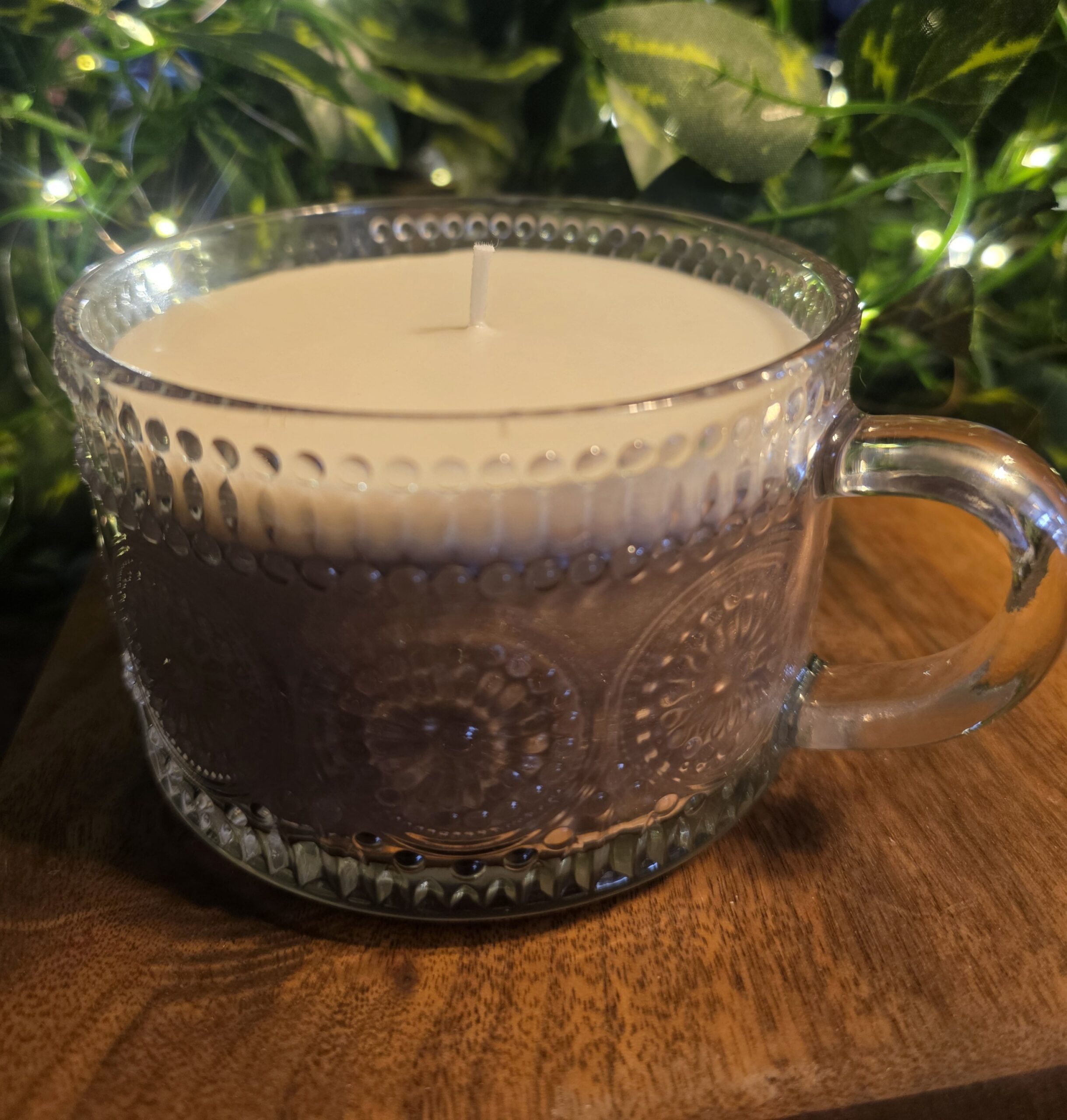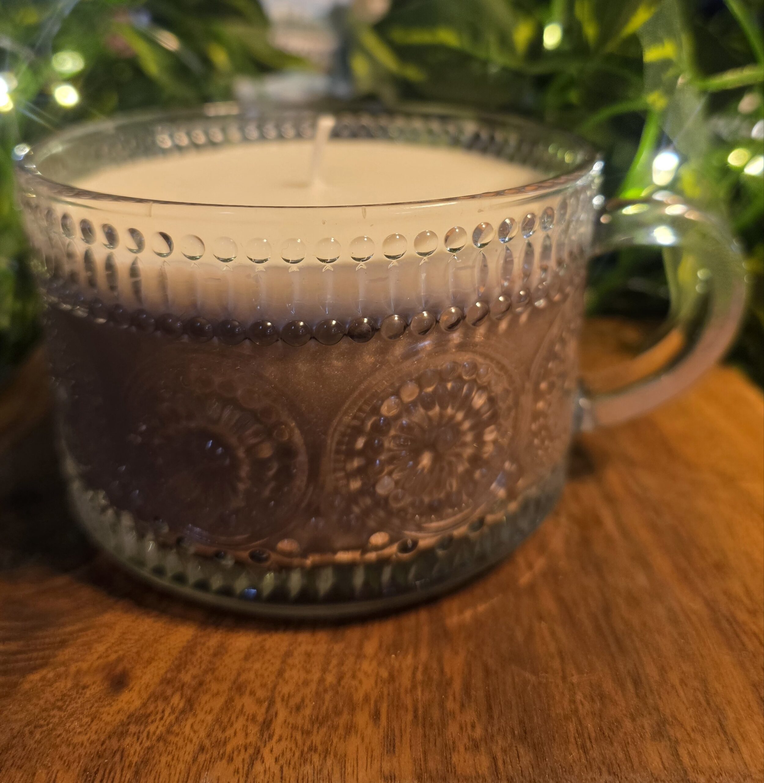 Cozy meets sophistication with this beautiful coffee mug candle poured into a textured vintage-style glass cup. Featuring a creamy top and rich coffee-colored base, it’s designed to look like a warm café drink while adding a soft, elegant glow to any space.